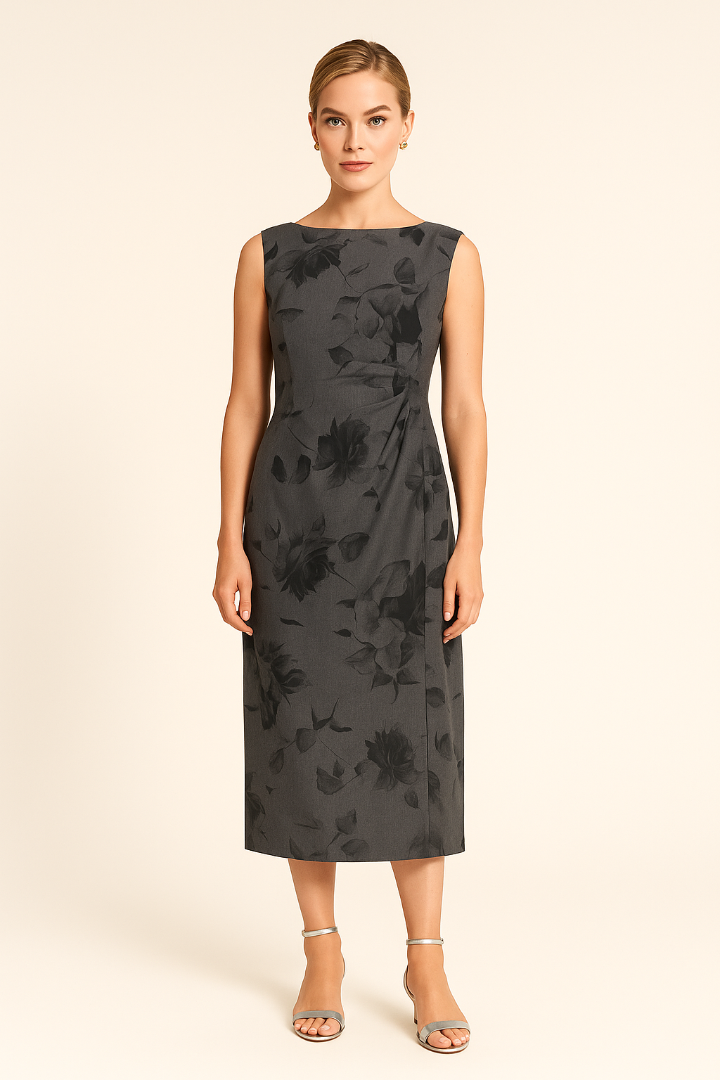 ABITO MIDI, STAMPA FLOREALE TONO SU TONO, LINEA SLIM FIT