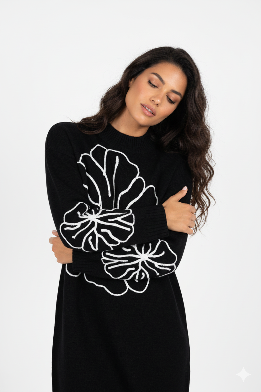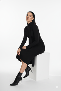 ABITO MIDI A MANICHE LUNGHE CON COLLO ALTO E FIOCCO
