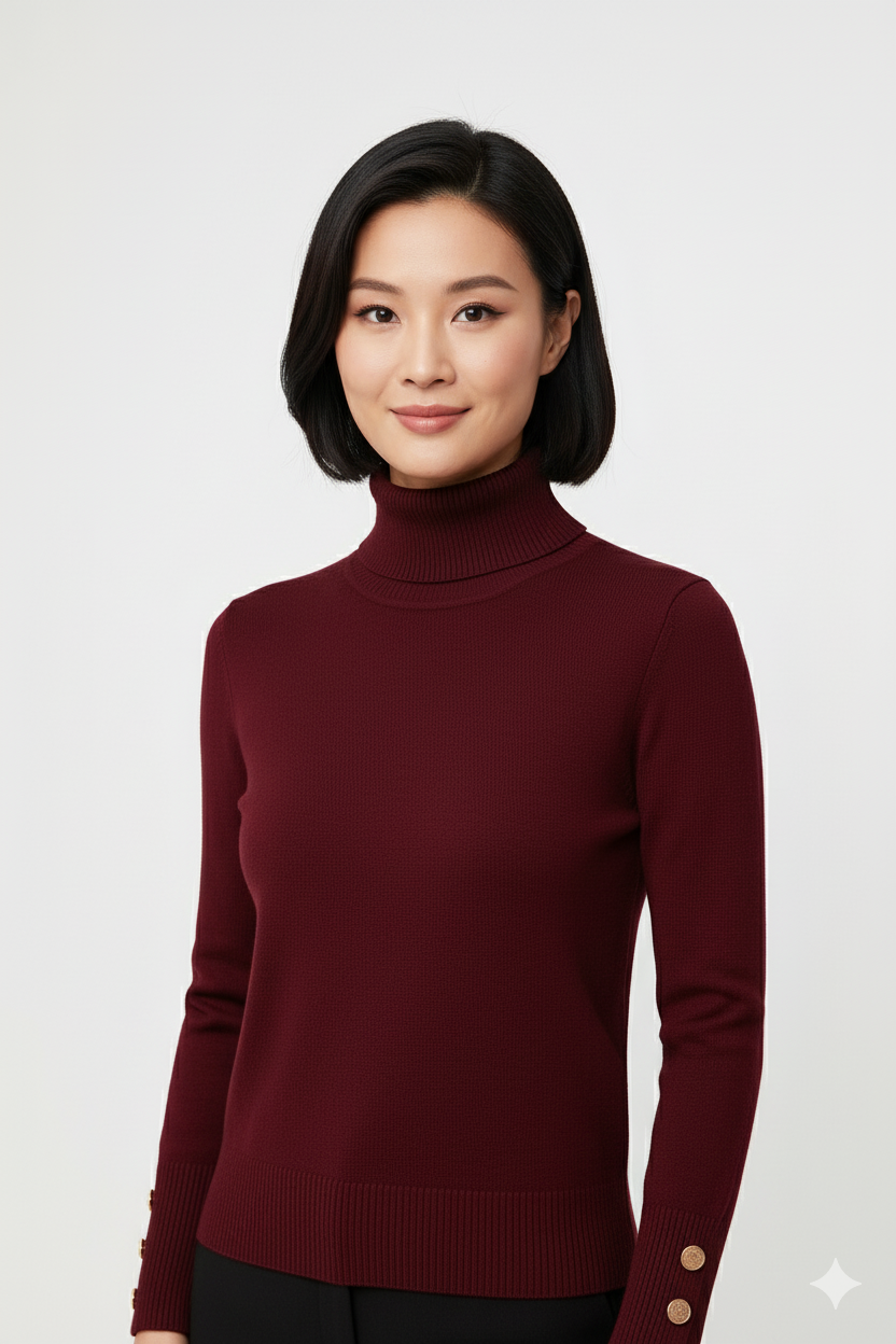 MAGLIA COLLO ALTO CON APPLICAZIONE SPALLA