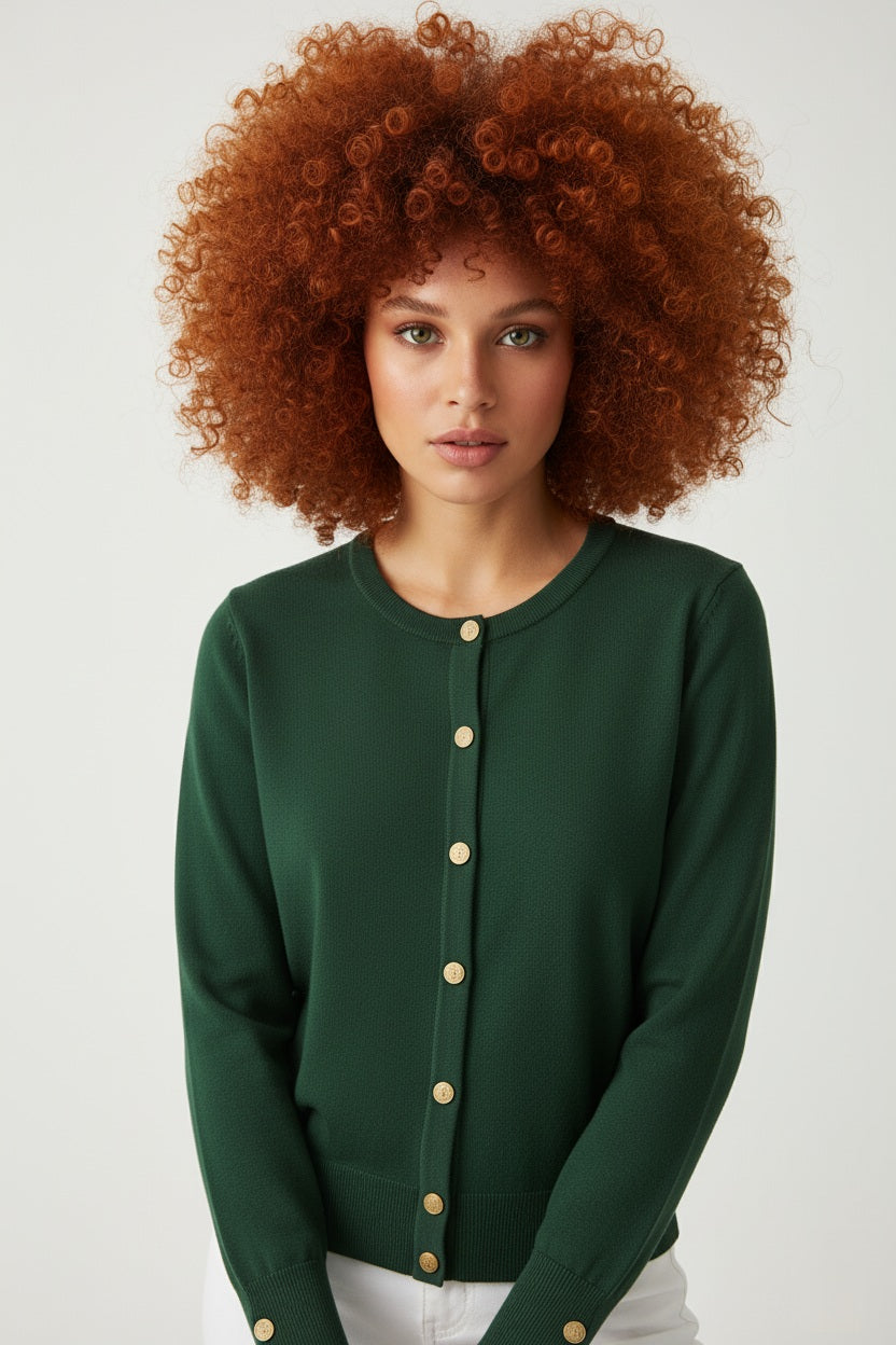 CARDIGAN GIROCOLLO CON BOTTONI ORO