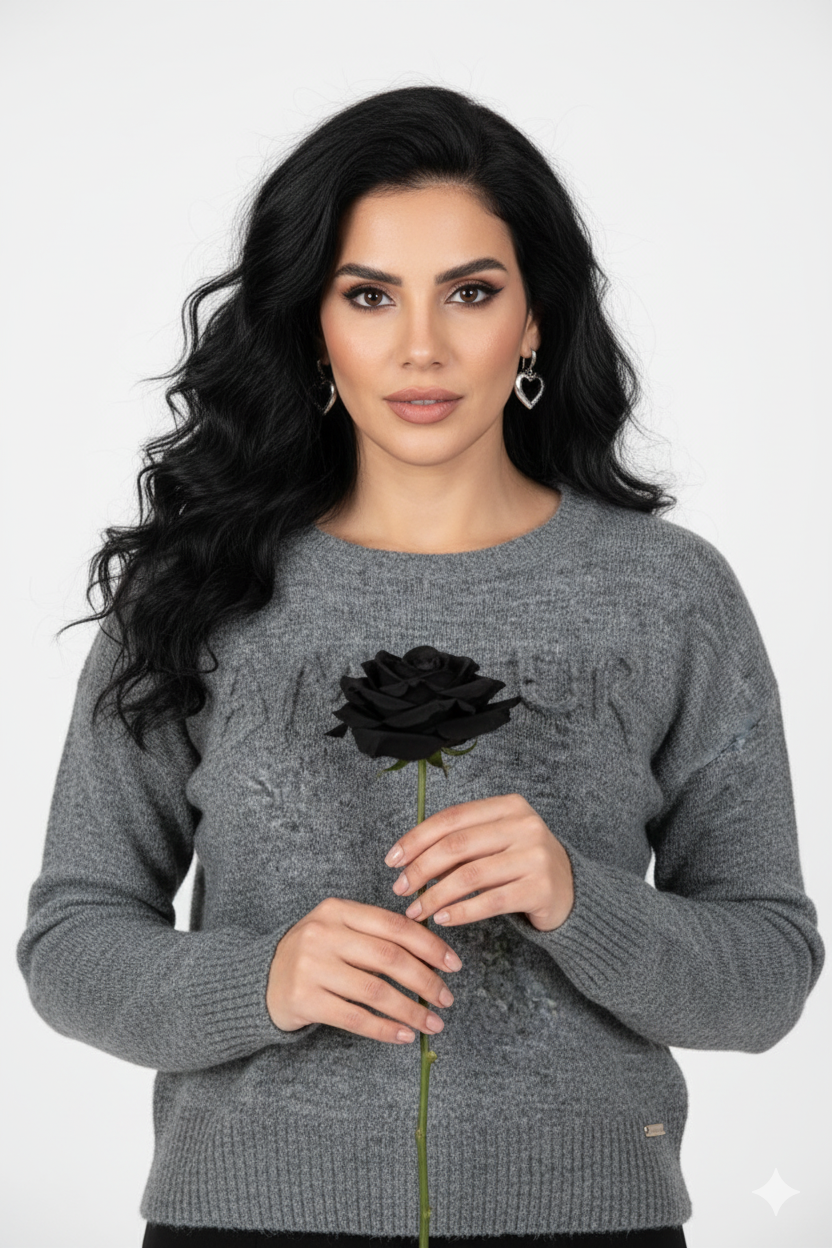 MAGLIA GIROCOLLO FOGLIE STRASS