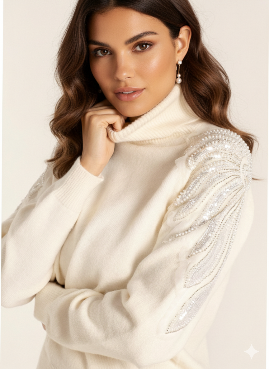 MAGLIA GIROCOLLO APPLICAZIONI PERLE