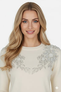 MAGLIA CON APPLICAZIONE STRASS E PERLE