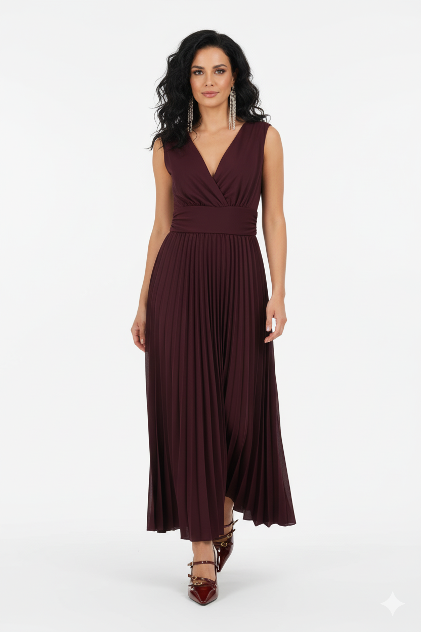 ABITO LUNGO CON GONNA PLISSÉ E SCOLLO INCROCIATO