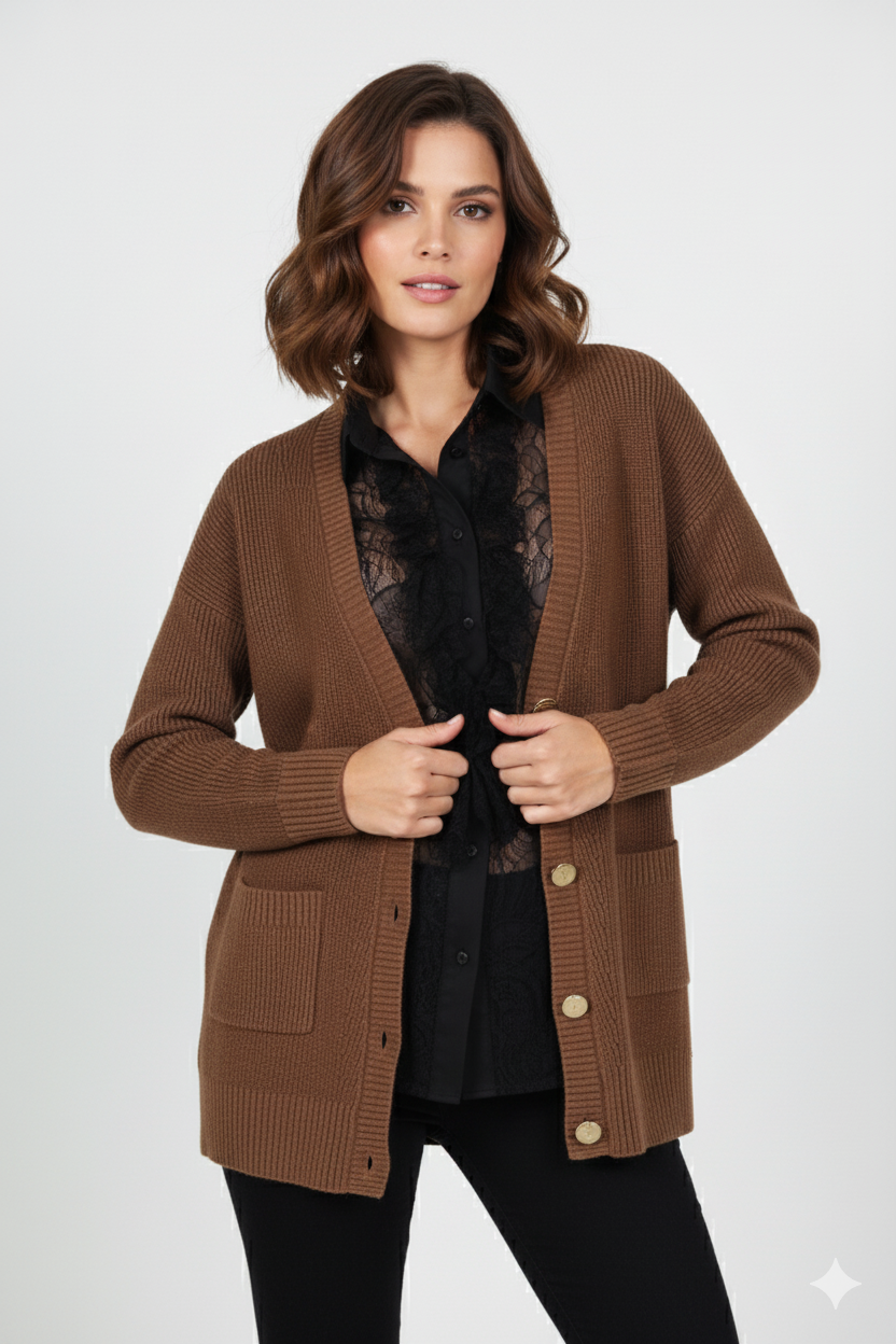 CARDIGAN BASIC CON BOTTONI RICOPERTI
