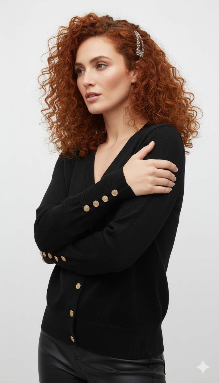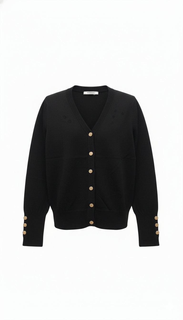 CARDIGAN GIROCOLLO CON BOTTONI ORO