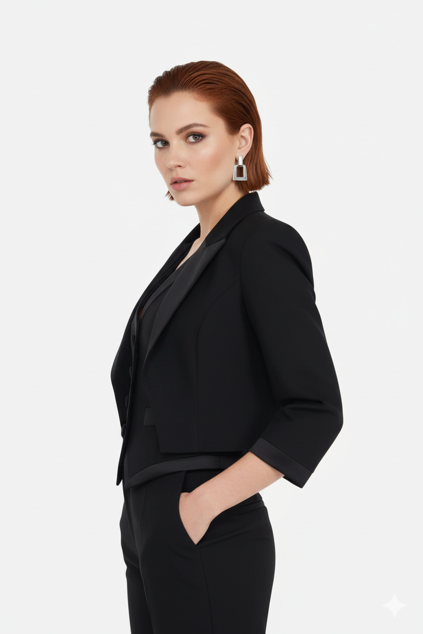 GIACCA CORTA CON REVER E BORDI IN RASO