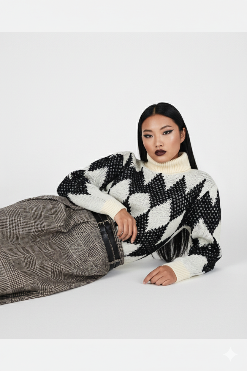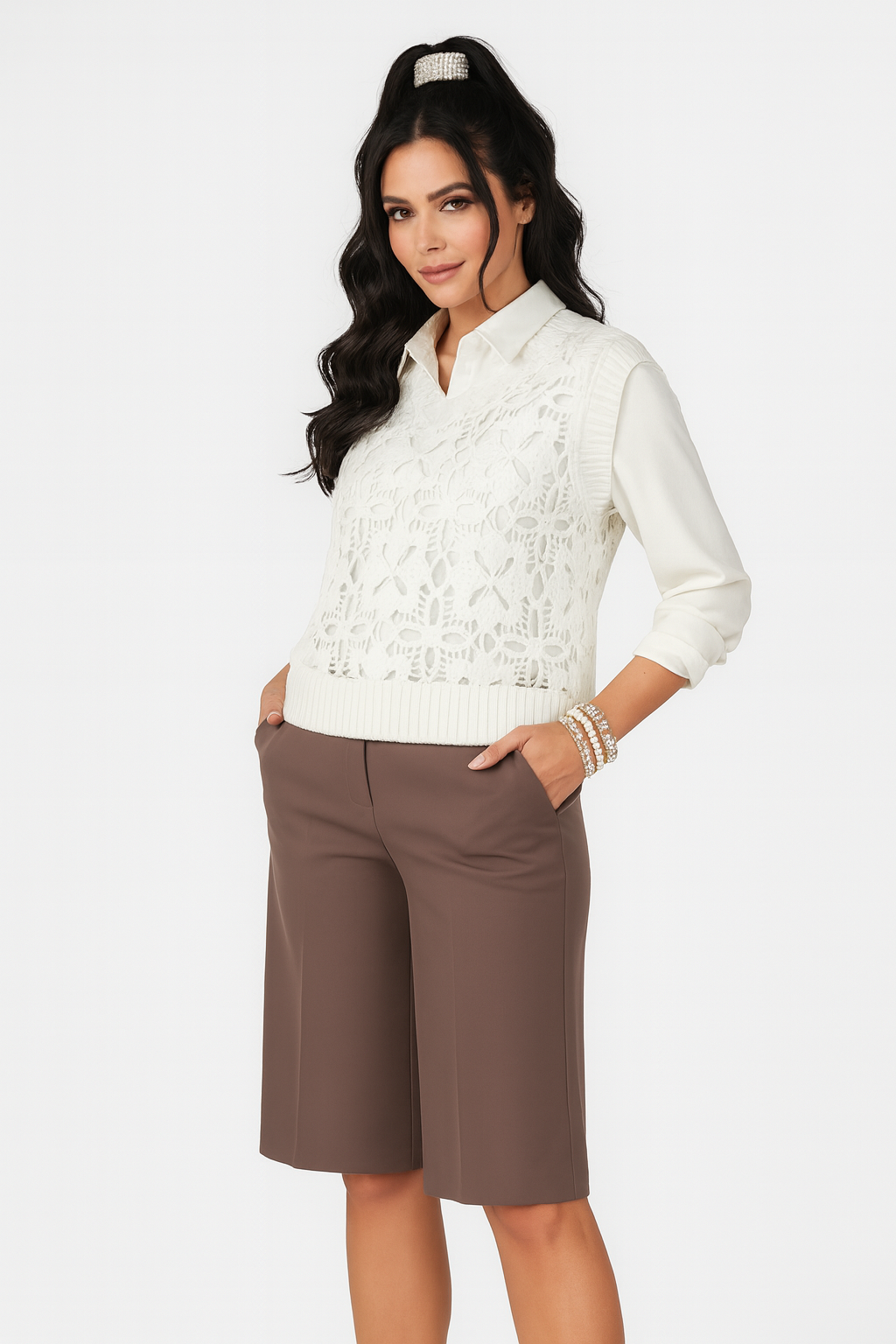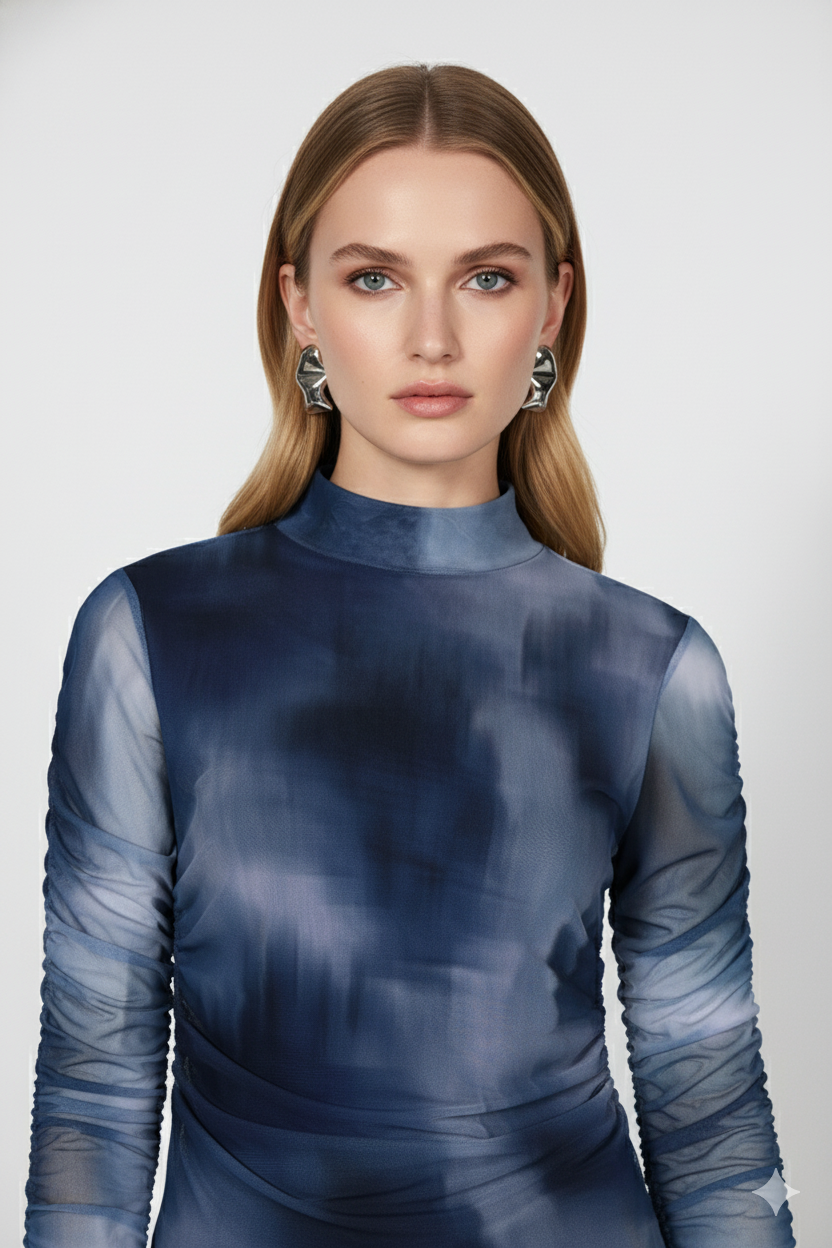 MAGLIA DOLCEVITA CON TRASPARENZE E MANICHE PLISSE'