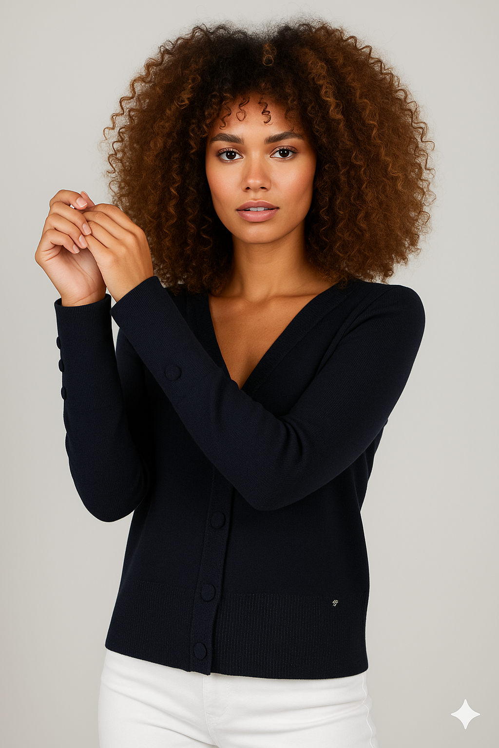 CARDIGAN GIROCOLLO CON BOTTONI ORO